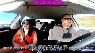 Hot Brunette Latina's Pierced Nipples in Ride Share Handjob Blowjob Cumshot