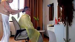 wild nudist barbershop compilation! 😲 apron lady strips client naked backstage beach vibes 💦