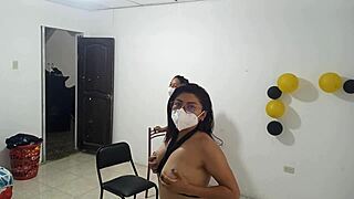 Butt plug perfectly fits my Latina anus tits sweaty from rough anal fantasies