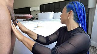 Blue Hair Slut Deepthroats Monster Cock Sloppily