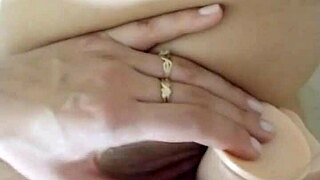 hot stepmom has fun with toys in bathroom.