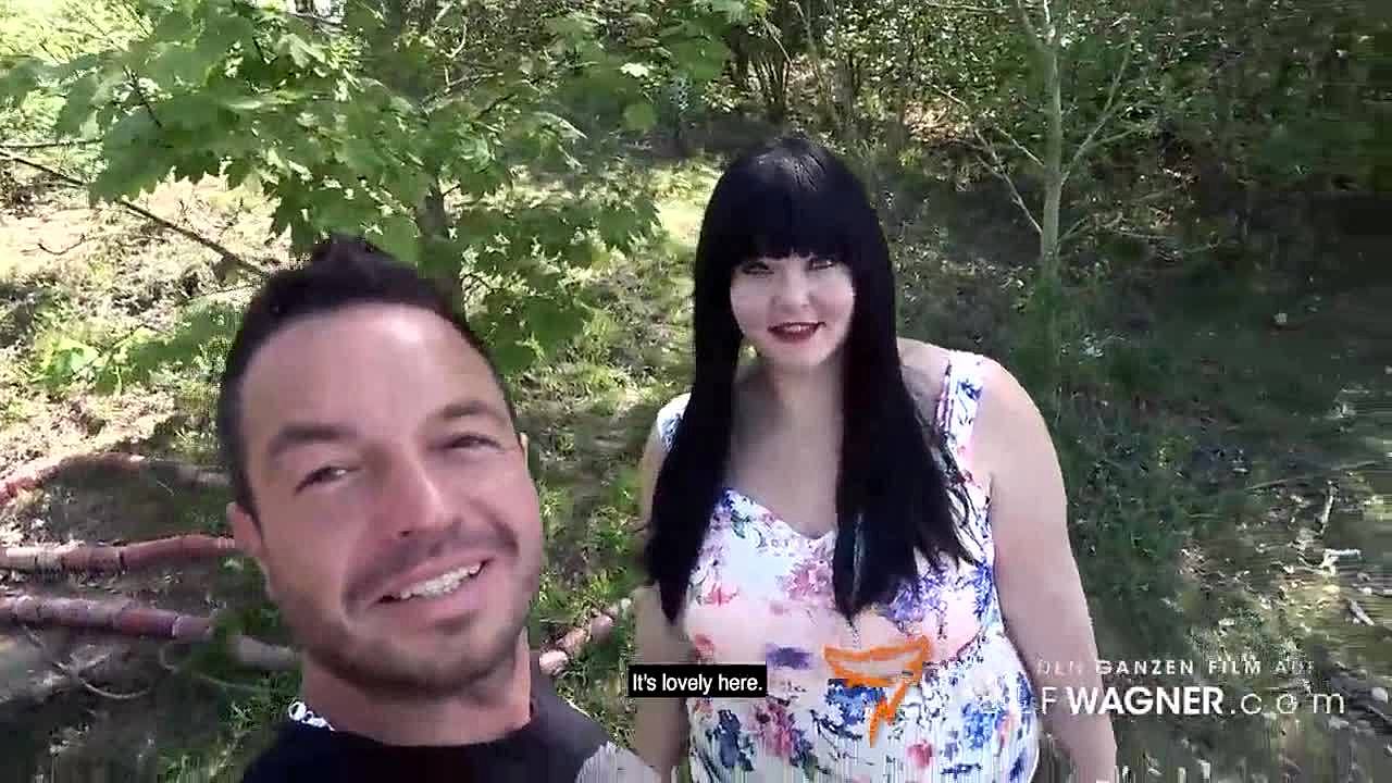 short hair blonde pregnant girl takes big dick pounding outdoors in public for cash