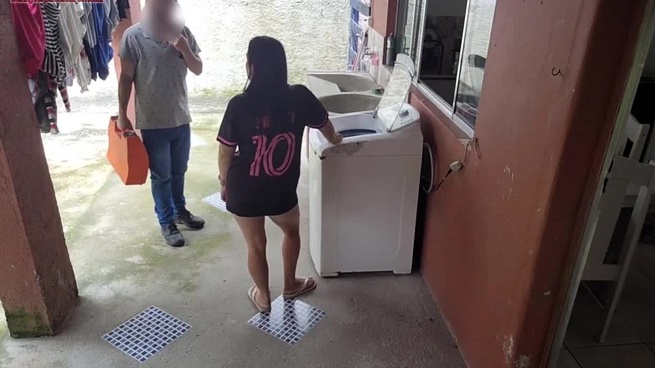 زوجة متزوجة تدفع فني غسالة بجسدها