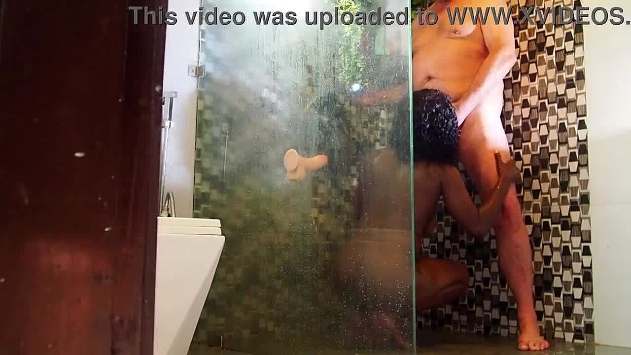 Masturbating with Toy in Front of Mirror While Husband Showers