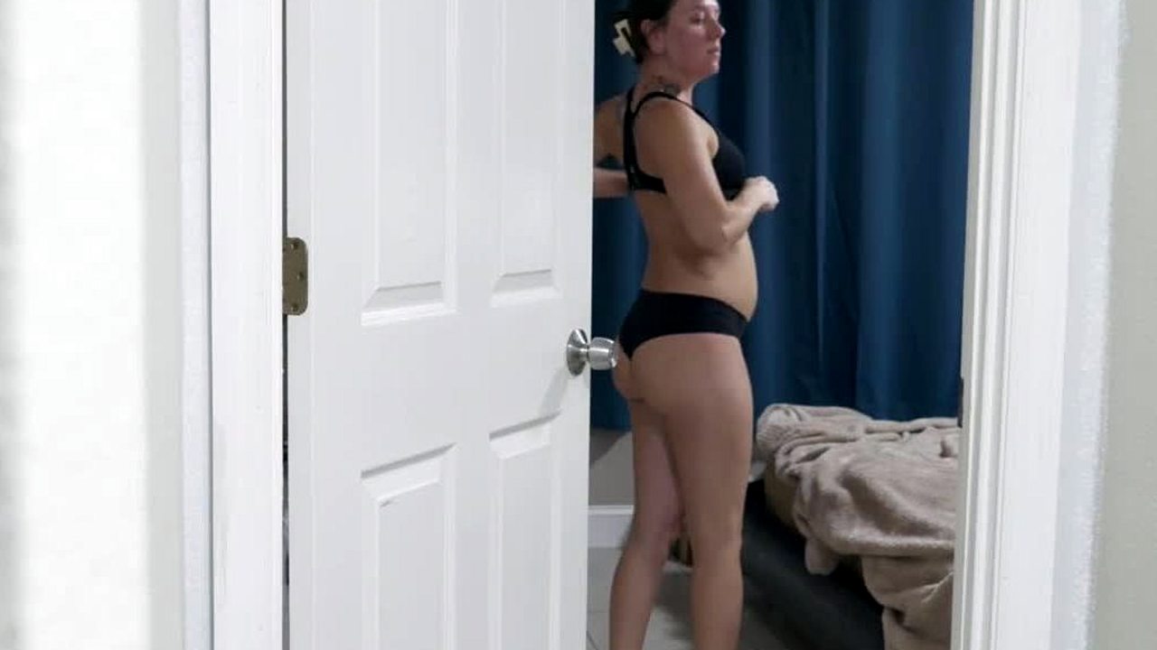 futa stepmom caught with huge cock... cum countdown on her yoga pants!